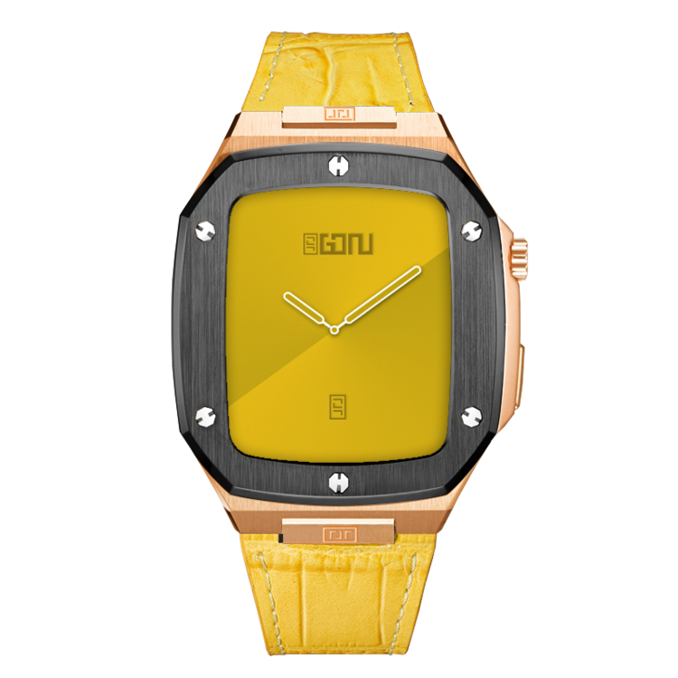 45mm-로즈골드-블랙-소가죽(악어)-옐로우